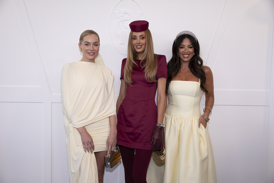 The Birdcage was buzzing with excitement, with vibrant fashions and colours turning our heads. Red was the dominant hue, with splashes of baby blue and buttery yellows adding a cheerful twist. Moraya Wilson, former Miss Universe Australia, captured attention in her custom Jason Grech creation that evoked the glamour of classic films, reminiscent of moments from “The Bodyguard.”