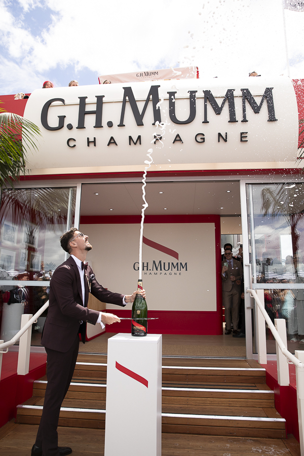 Thanasi Kokkinakis added a touch of celebrity charm as he popped the official magnum of Champagne in front of the Mumm Marque, managing to stay dry and stylish, in contrast to sailor Jessica Watson, who was drowned by the popping of Champagne at the Derby.
