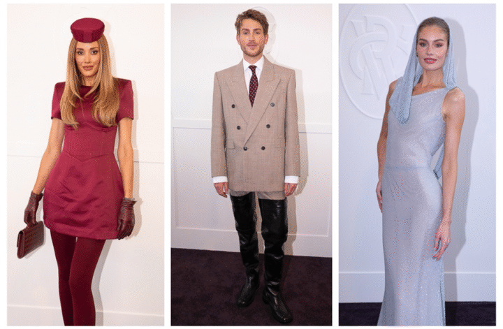 The Birdcage was buzzing with excitement, with vibrant fashions and colours turning our heads. Red was the dominant hue, with splashes of baby blue and buttery yellows adding a cheerful twist. Moraya Wilson, former Miss Universe Australia, captured attention in her custom Jason Grech creation that evoked the glamour of classic films, reminiscent of moments from “The Bodyguard.”