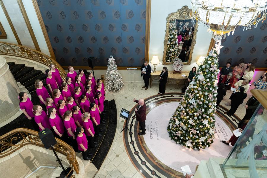 This year, the Langham marked the arrival of the festive season with its annual Christmas Soirée, held in the grand lobby. Guests gathered around one of the most magnificent Christmas trees you could possibly imagine a stunning centrepiece that adds a touch of magic to the festive atmosphere. The tree, adorned with twinkling lights and exquisite decorations in the Langham’s signature pink colours, serves as a delightful backdrop for the celebrations.