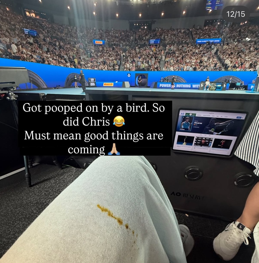Adding a humorous twist to their evening, Bec took to Instagram to share a cheeky moment where both she and Chris got pooped on by seagulls during the match. “Looks like luck is heading our way!” she quipped, showing her light-hearted spirit amid the chaos.