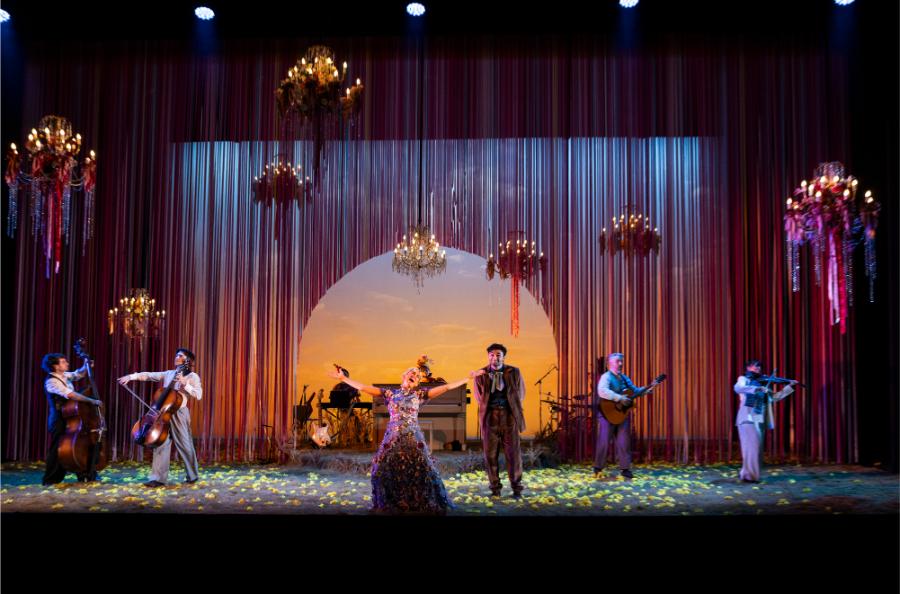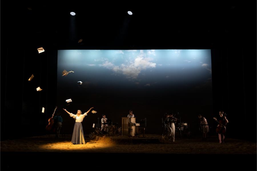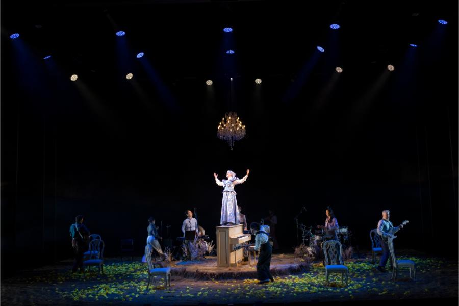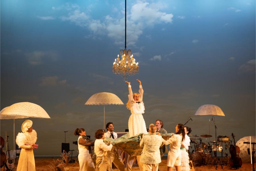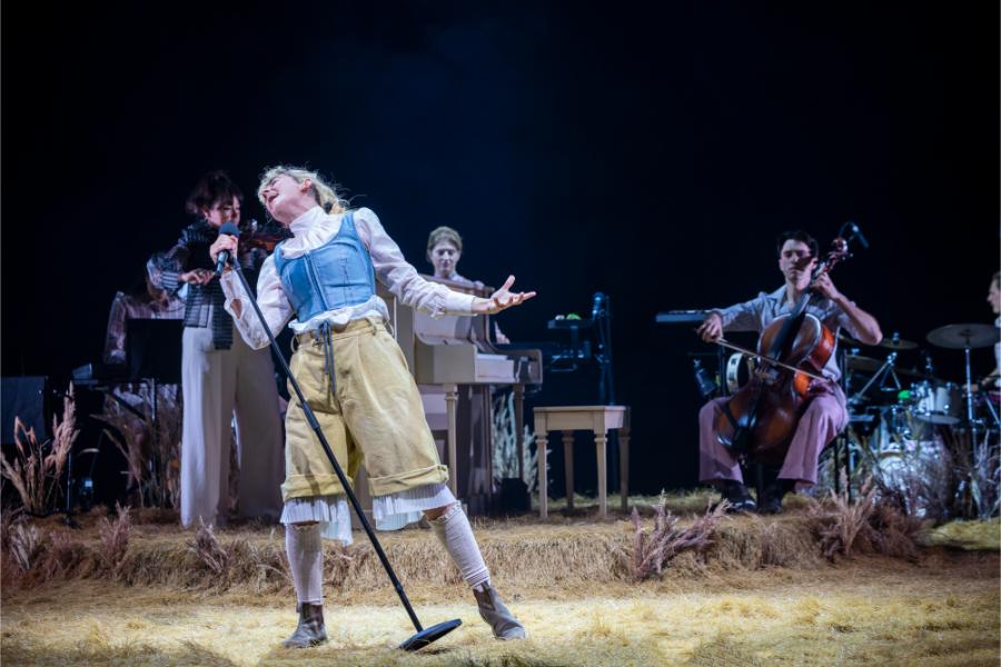 Marg Horwell’s set design is a standout feature, ingeniously integrating the on-stage band into the action. This design choice not only reinforces the idea of storytelling as a collective endeavour but also allows for flexibility, with actors playing instruments live throughout the performance. The set’s vibrant energy mirrors Sybylla’s own journey, a constant, dynamic interplay between character and performer.