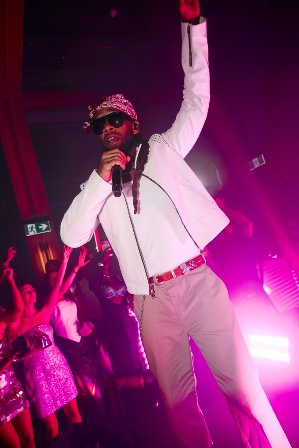 But it was Swae Lee who took things to another level. In true Californian style, he climbed straight on top of the bar, turning the entire venue into a stage. His beats were electric, and when hits like “Reason” dropped, the A-list crowd erupted into a frenzy.
