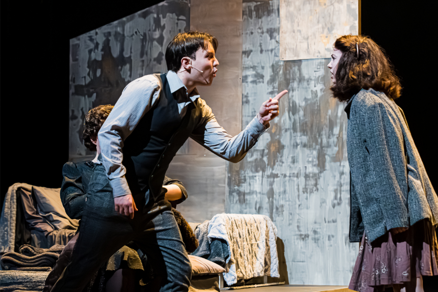 The subject matter of Anne’s diary quickly shifts after her sister Margot (Emma Smith) receives a letter calling her to report to one of the concentration camps. The Franks decide that they need to leave, and Anne’s parents reveal that they have been preparing for them to hide in a secret annex above Otto Frank’s office. The Franks are soon joined by Mr. and Mrs. van Daan, (Matt Dyktynski & Asha Cornelia Clue) and their teenage son Peter, (Nathan Hampson) and Jan Dussel (Jamie Jewell) who will be hiding with them. The constant threat of discovery hovers over them in every scene and tensions are raised as each family struggles to remain hopeful.